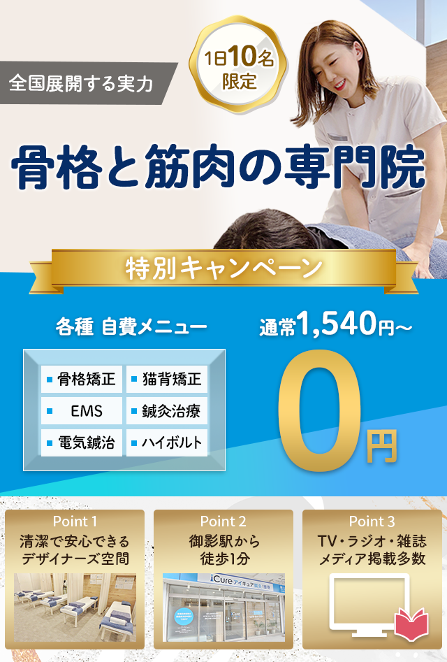 肩こりや腰痛など、体のコリ・痛みは「骨格のズレ」が根本的な原因です。